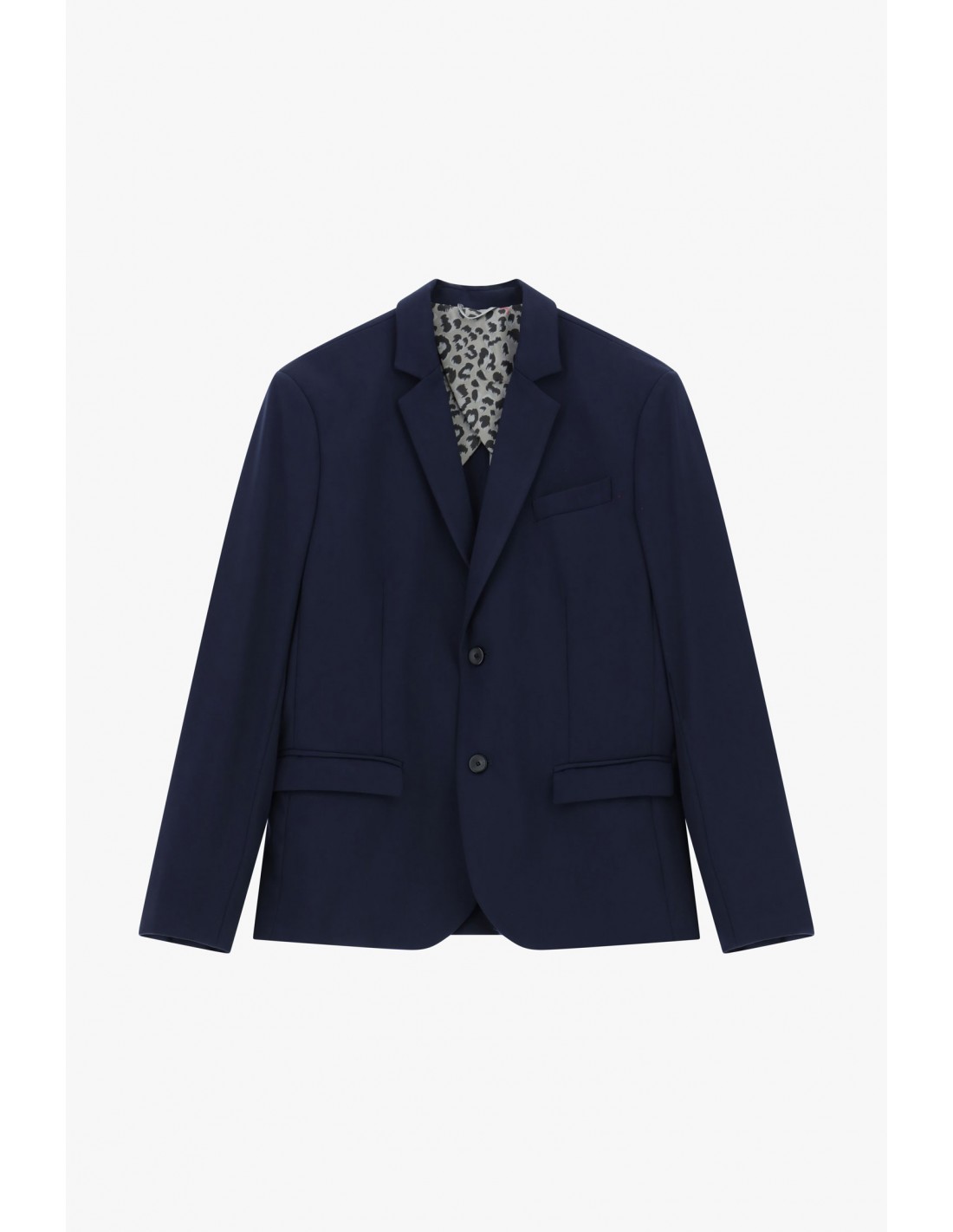 Conçu dans un drap fluide de qualité, il se distingue par ses finitions soignées : une fente milieu dos, une demi-doublure pour plus de confort, une poche intérieure discrète et deux poches côtés à rabat et passepoil.