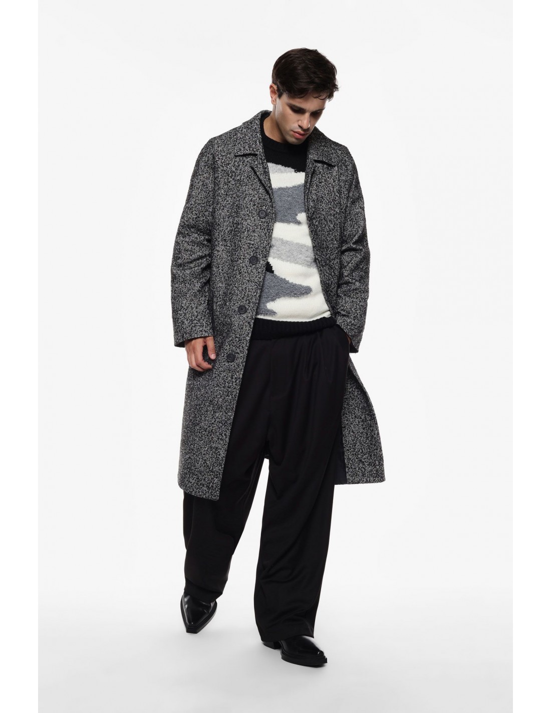 Imperial Homme – Manteau long oversize en tweed de coton
