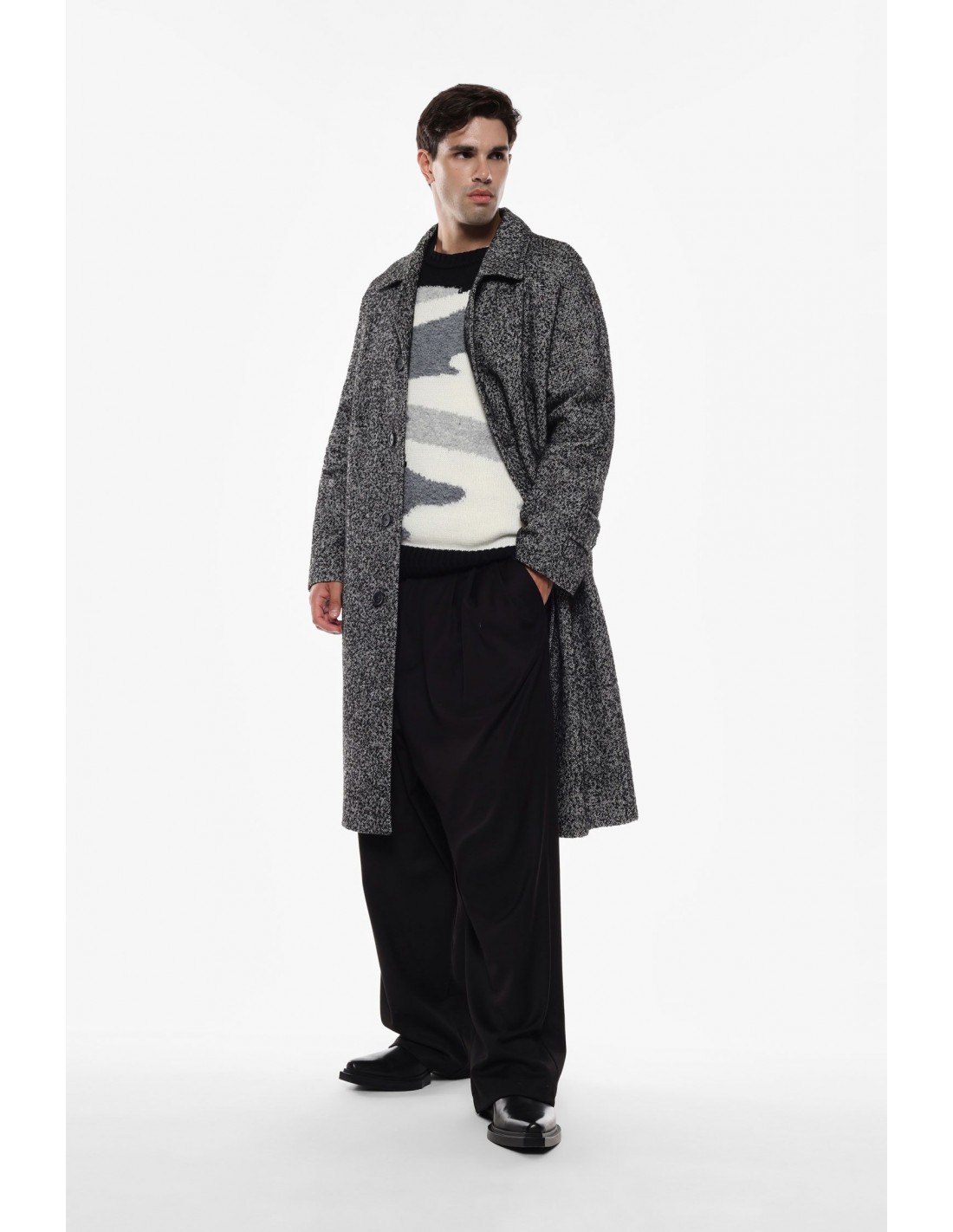 L’élégance italienne dans toute sa modernité. Ce manteau long pour homme signé Imperial associe une coupe oversize à des détails tailleur précis, pour un rendu à la fois contemporain et intemporel. Confectionné dans un tweed de coton texturé, il se distingue par sa légèreté maîtrisée, sa doublure intégrale et sa construction impeccable.